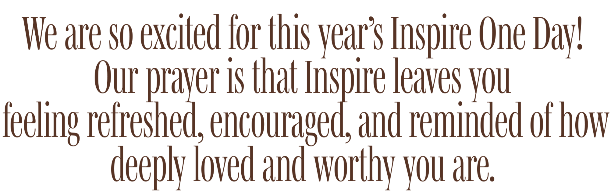 Inspire One Day is a one-day women’s conference created to encourage, refresh, and connect women through worship, teaching, and community.